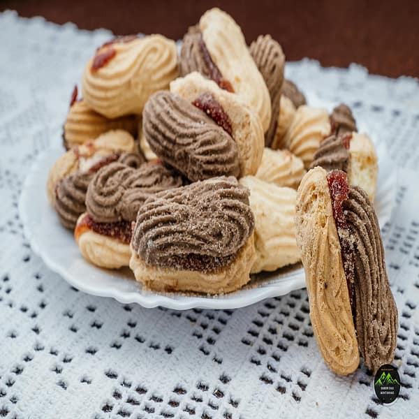 O Biscoito Romeu e Julieta é feito com uma massa leve e amanteigada e uma massa sabor de chocolate unido por uma deliciosa goiabada.